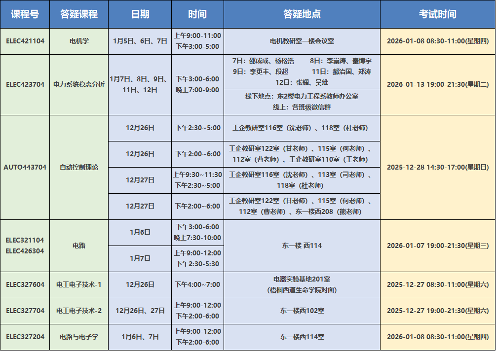 为更好帮助同学们解决在课程学习中遇到的问题和困难,电气学院对部分课程进行集中辅导答疑,具体安排如下: