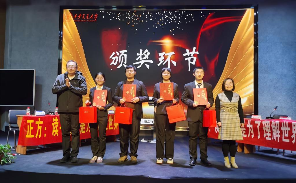 2025年11月20日晚,西安交通大学"国运杯"第四届辩论赛初赛暨"批判性与创新性思维导论"课程辩论赛在西安交通大学丝路大讲堂教室举行。中华网、哔哩哔哩平台和微博平台对本次辩论赛进行了现场直播,累计观看人数超41万人次,累计获赞超3.6万人次。华语辩论赛著名教练及评委、航天学院党委书记张爱萍,人文学院副院长、"批判性与创新性思维导论"课程负责人王伟,“国运杯”辩论赛主要负责人、音乐教育中心支部书记曹耿献,校辩论队队长王羽凡担任评委。我校教育基金会副秘书长赵力,教务处主管杨程,中华网陕西频道总编辑王应以及文化艺术报全媒体记者梁飞燕出席比赛。
